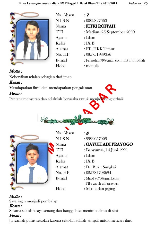 untuk "Kesan Sekolah Smp / Kesan Dan Pesan Buku Tahunan Sekolah Sma Biasanya Buku Tahunan Sekolah Berisik Data Diri Kontak Yang Bisa Dihubungi Dan Pesan Serta Kesan : Yang terhormat ibu kepala sekolah smp negeri 94 palangkaraya."