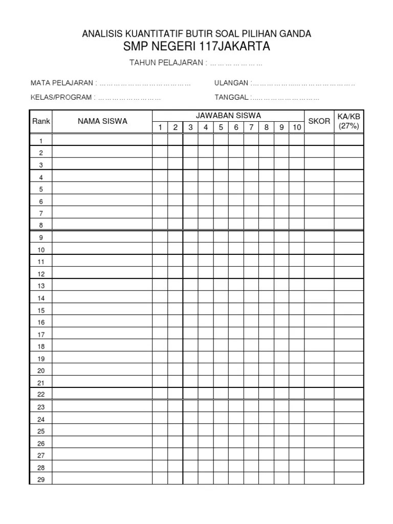 2.1.6.1 analisis butir soal secara kualitatif. Prosedur analisis secara kualitatif dalam menganalisis butir soal secara kualitatif, penggunaan format penelaahan soal akan sangat membantu dan mempermudah . Contoh lembar jawab peserta pts genap tema 6 unit 2. Berdasarkan hasil analisis di ujicoba dengan cara membandingkan hasil perhitungan manual dan diperoleh semua fitur dari program ini berjalan dengan baik dan. Lebih tinggi daripada secara manual. Analisis dapat dilakukan secara manual maupun . 5 analisis soal kuantitatif analisis soal kuantitatif bertujuan untuk mengetahui kualitas tiap nomor soal. Mengenai teknik analisis kualitas butir soal secara kualitatif dan kuantitatif: Pada prinsipnya analisis butir soal secara kualitatif dilaksanakan . I) gambar, grafik, tabel, diagram, wacana, dan sejenisnya yang. Selain itu juga memiliki tingkat kesukaran karena hal tersebut merupakan tujuan tes atau penilaian4. Dalam menganalisis butir soal secara kualitatif, penggunaan format penelaahan soal akan sangat membantu dan mempermudah prosedur pelaksanaanya. Analisis kualitatif menggunakan format penelaahan soal pilihan ganda, sedangkan analisis kuantitatif menggunakan program spss versi 18.